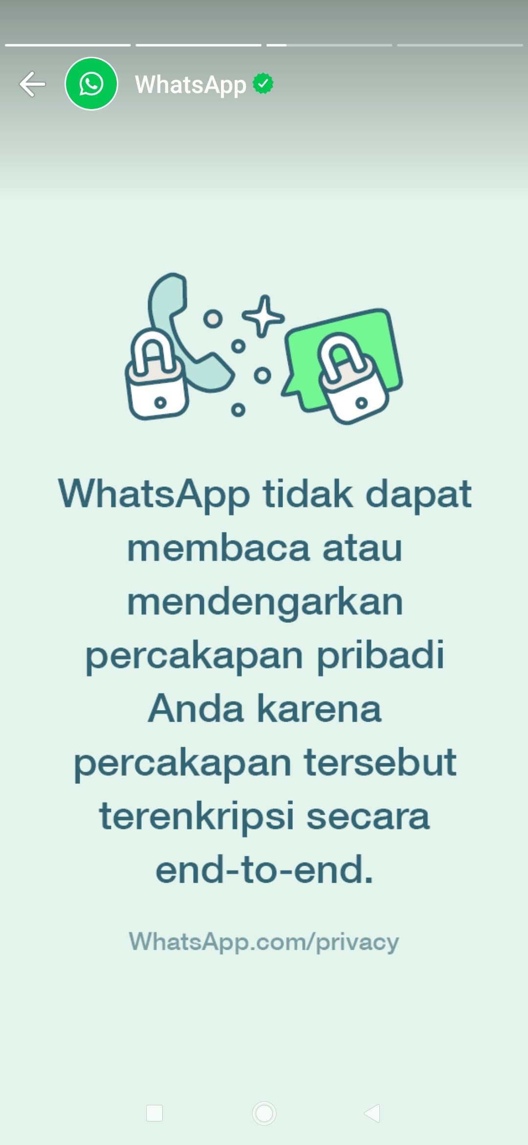 Banyak juga yang takut dengan kebijakan baru whatsapp ini yang katanya kita sudah tidak punya privasi bahkan akan yang membuat status atau hastag RIP PRIVASI. Tenang aja , whatsapp sendiri sudah mengumumkam, bahwa kebijakan privasi pengguna tetap seperti semula, aman banget. Jangankan bocor dan disadap orang lain, bahkan whatsapp nya sendiri gak bisa buka pesan kita di aplikasinya karna semua.pesan yang dikirim melalui aplikasi whatsapp akan di enkripsi secara end-to-end, diubah menjadi data data kode gitu gengs. Jadi tenang aja, aman kok. Maka dari itu, bijaklah dalam menggunakan media sosial yamg gengs.